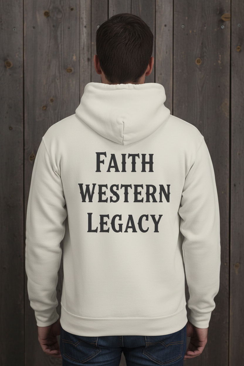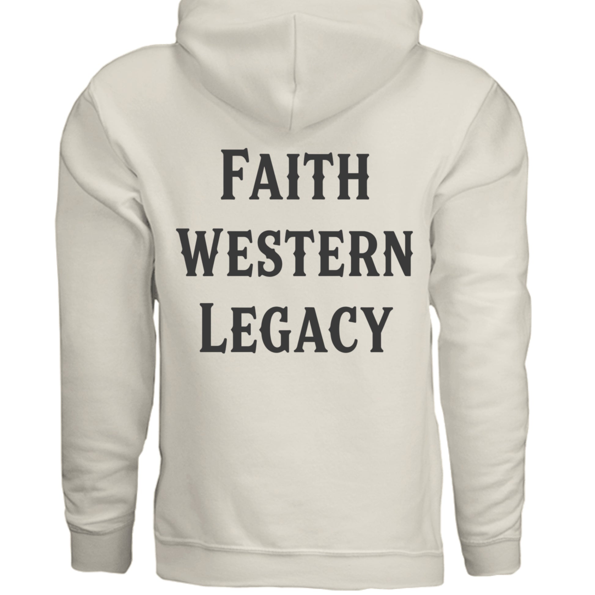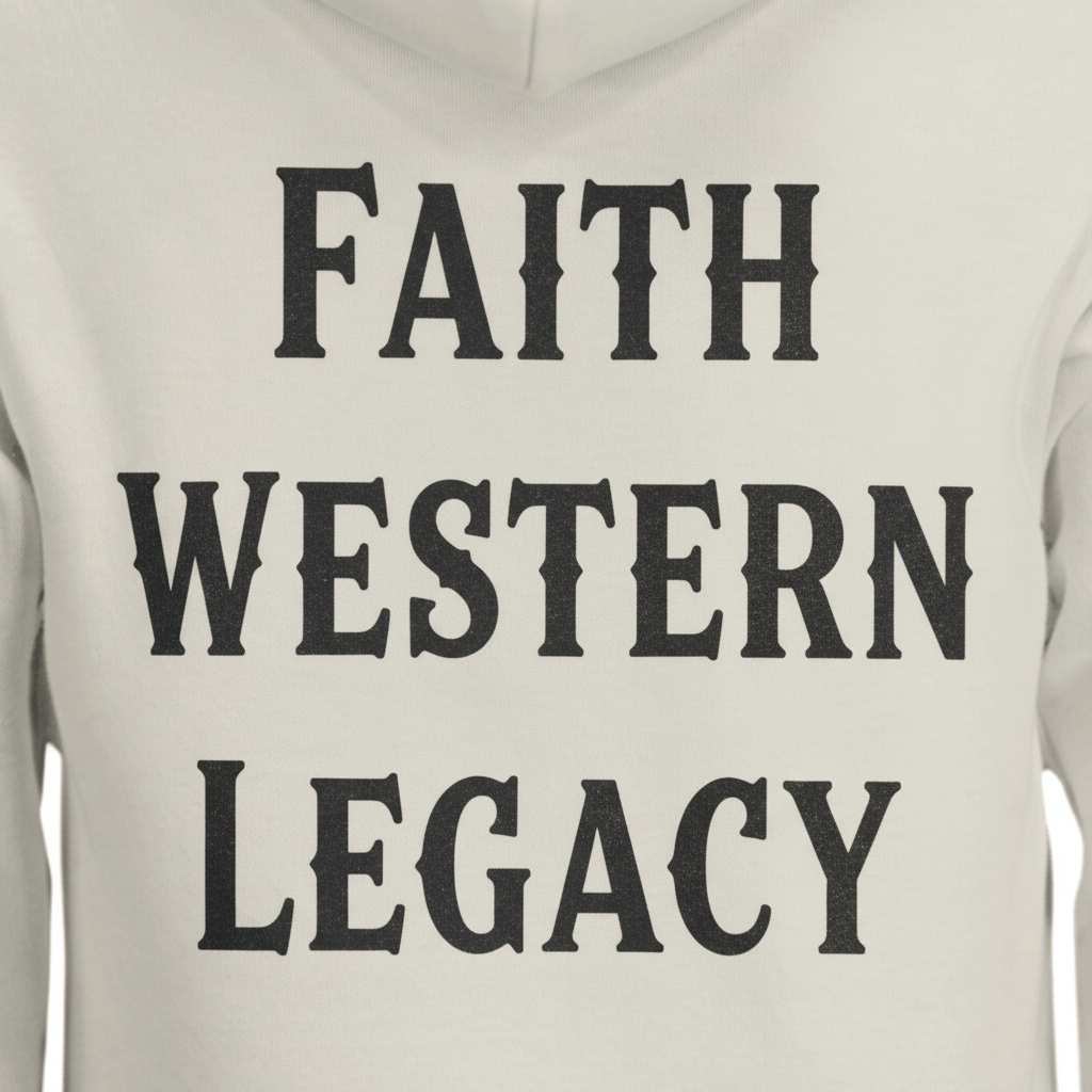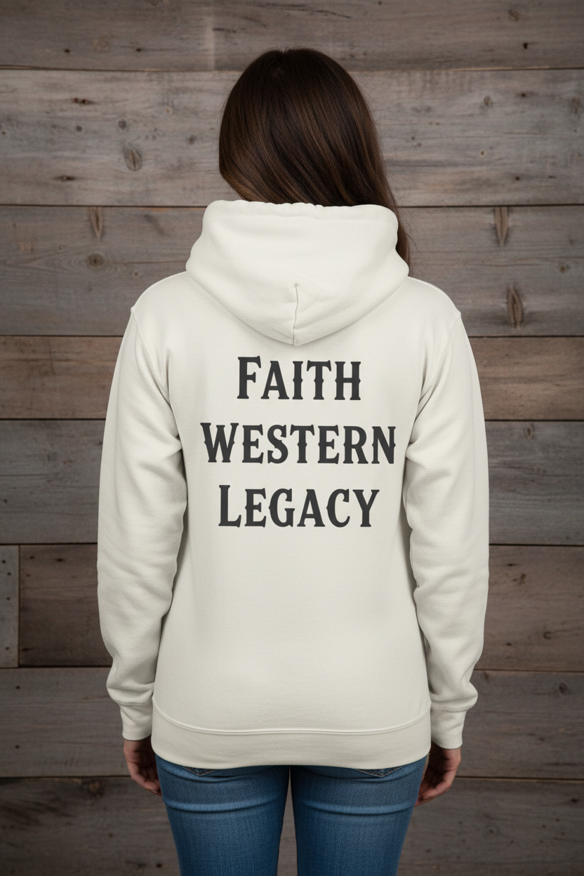 The White Legacy Hoodie brings everyday comfort together with bold belief and western spirit. With a subtle logo on the front and a powerful Faith Western Legacy design on the back, this fleece‑lined hoodie is perfect for cool nights, weekend wear, and walking in purpose every day.
