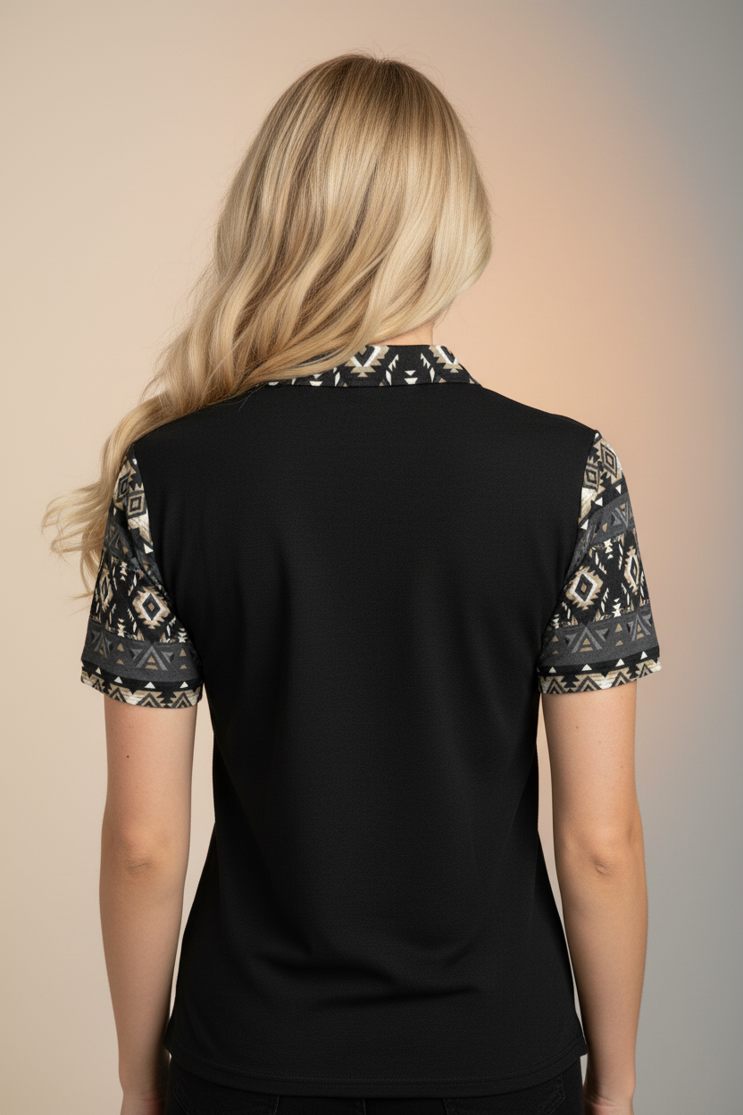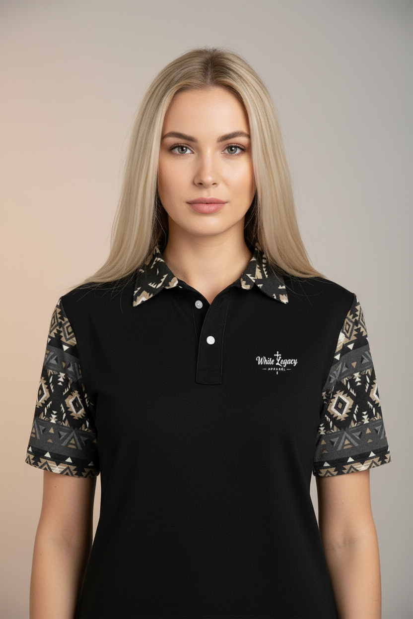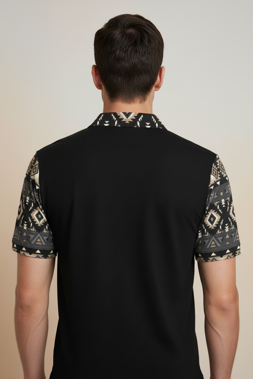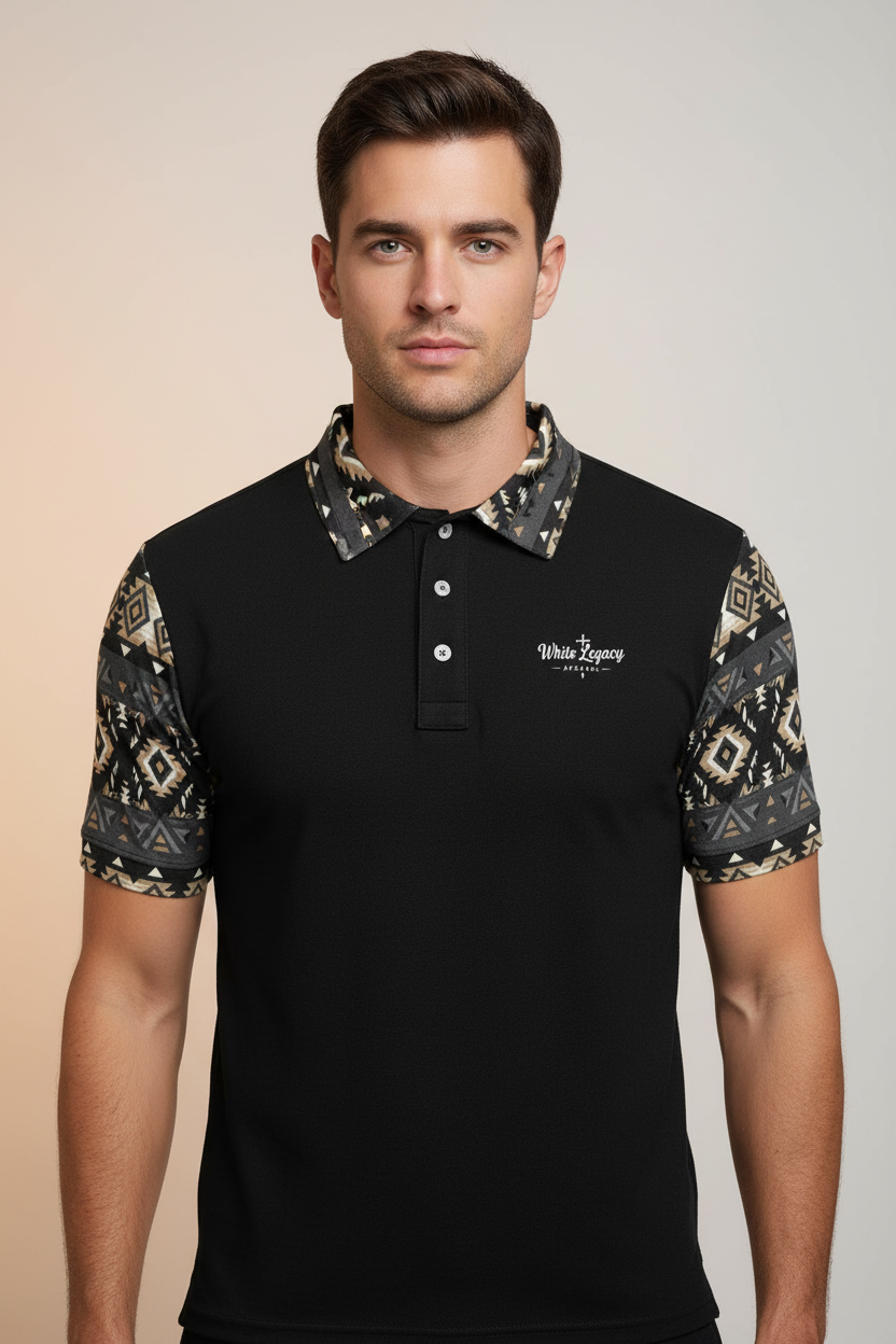 Built for men who move with purpose, the Midnight Aztec Polo blends modern performance with Western character. Designed with a clean black body and signature Aztec pattern accents, this polo transitions effortlessly from the course to town to a night out.