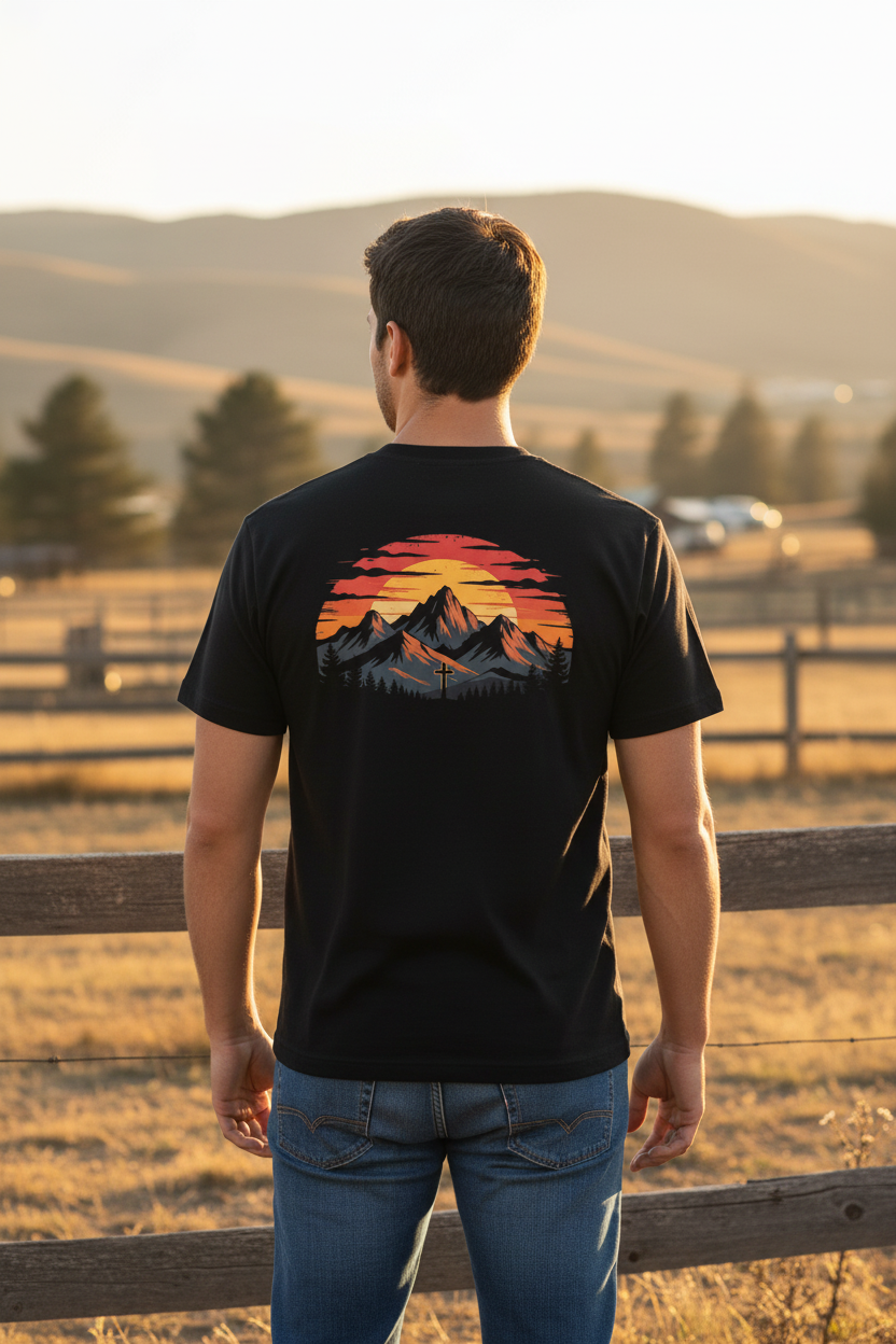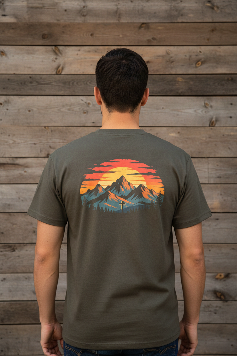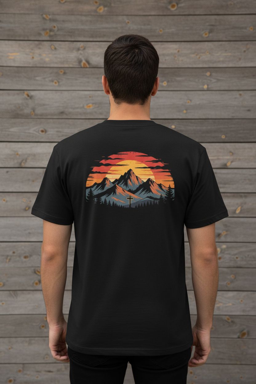 The Sunset Mountain Tee captures the spirit of rugged landscapes and unshakable belief. Featuring a minimalist mountain emblem on the front and a bold, sunset-soaked cross scene on the back, this tee isn’t just clothing — it’s a statement. Designed for men and women who walk in purpose, it’s built from heavy cotton for structure and lasting comfort. Whether you're out on the range, leading from the front, or standing tall in your faith — this tee carries your values without saying a word.