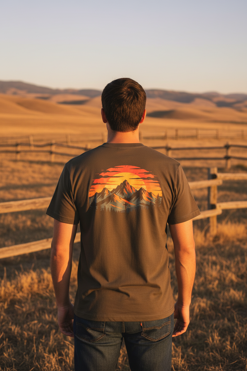 Our tees are crafted with premium fabrics and faith-driven designs to keep you comfortable and confident — whether you're working the ranch or walking downtown.