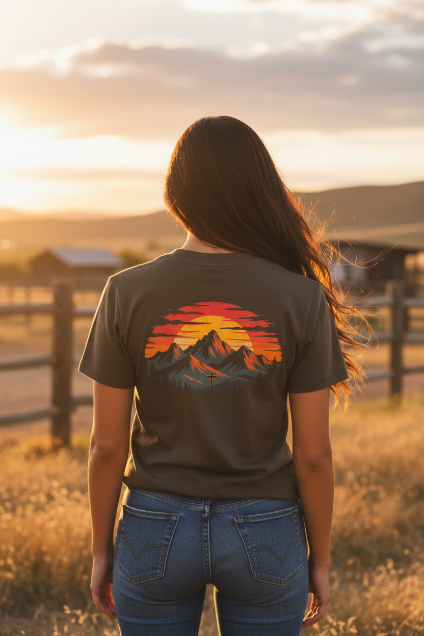 From Sunday service to Saturday adventures, our tees move with you. Premium fabrics, bold Western graphics, and faith-forward design — built for those who live with purpose.